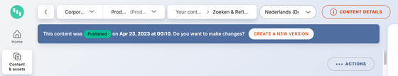 Zodra je pagina gepubliceerd is en je opent deze weer om wijzigen aan te brengen, dan staat er een melding bovenaan je pagina "Create a new version". Klik hierop op je pagina te wijzigen. Alle velden staan dan weer open om te bewerken.
