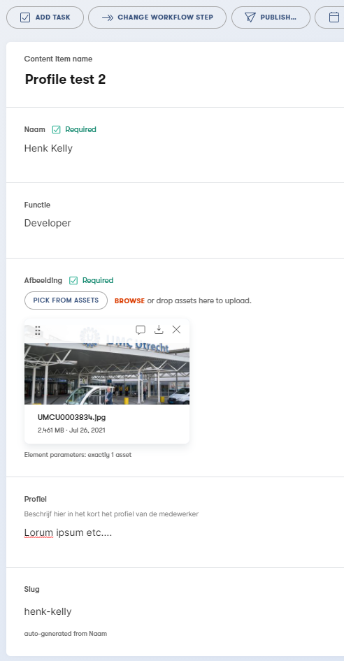 Voorbeeld van een ingevuld profile in Kentico: