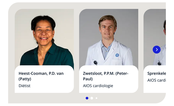 De zorgverleners carrousel bestaat uit zorgverlener cards. Voeg minstens 3 items van het content type Zorgverlener toe.