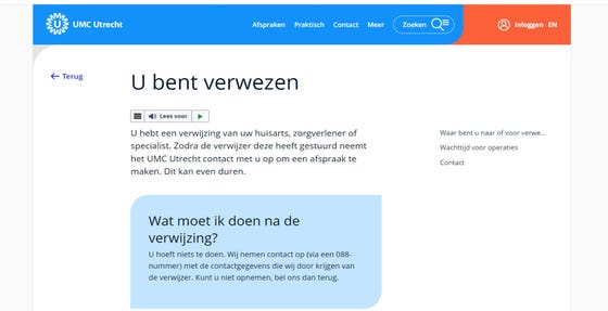 De patiënt kan meer, algemene informatie over de verwijzing lezen op de website van het UMC Utrecht.
