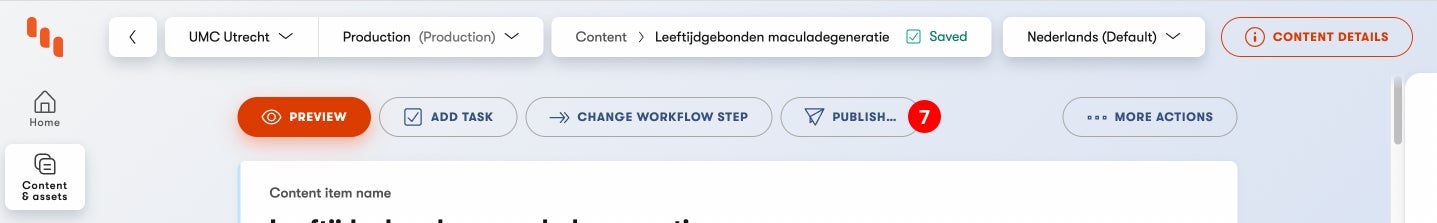 Staat alles juist? Klik dan op "Publish" (4). Je pagina is nu gepubliceerd op de website van het UMC Utrecht.