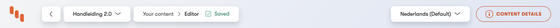 Opslaan gaat automatisch. Elke paar seconden wordt jouw pagina automatisch opgeslagen. Dit zie je bovenin.