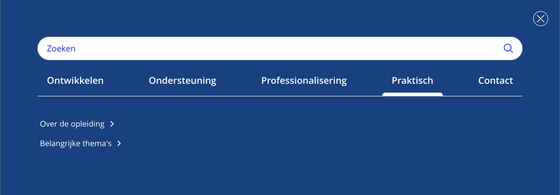 Het Single Overlay-menu gebruik je dus bij subsites waarbij het navigatiemenu niet ingewikkeld hoeft te zijn. Je stelt deze op de volgende manier in: