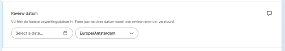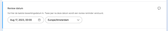 Uitleg hoe de review cyclus in te stellen per content item. De cyclus is standaard ingesteld op 2 jaar.