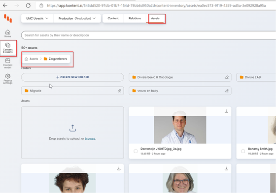 Alle hoofdredacteuren/redacteuren hebben editrechten op de collectie Zorgverleners binnen het Corporate sites-project in Kontent.ai.
